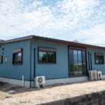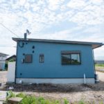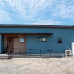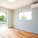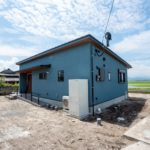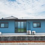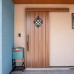 外壁はお施主様が選ばれた、水色×ベージュのやさしい塗り壁。