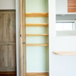 室内には造作棚や造作テーブルを設け、