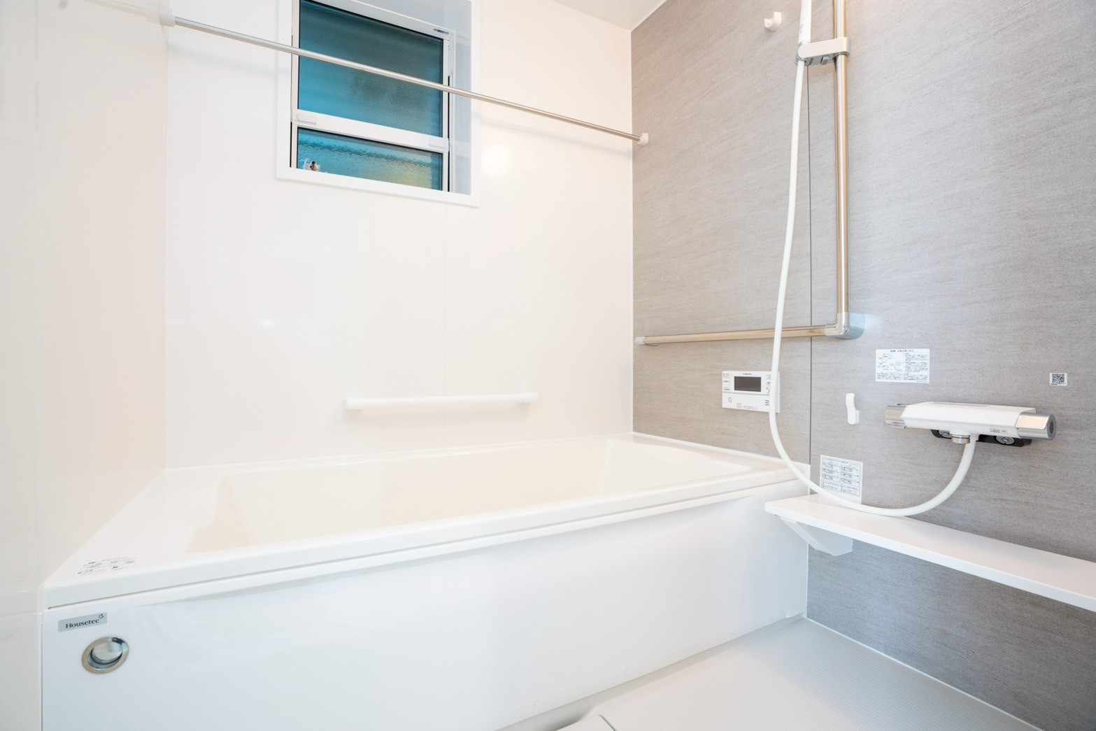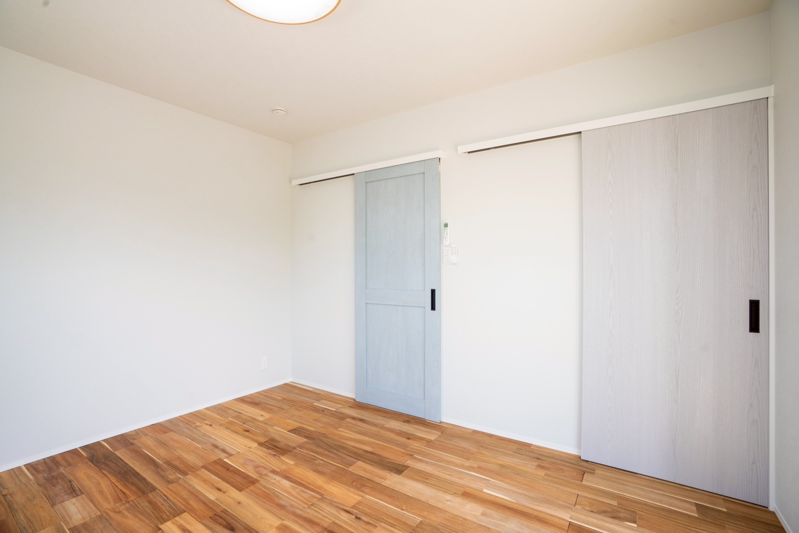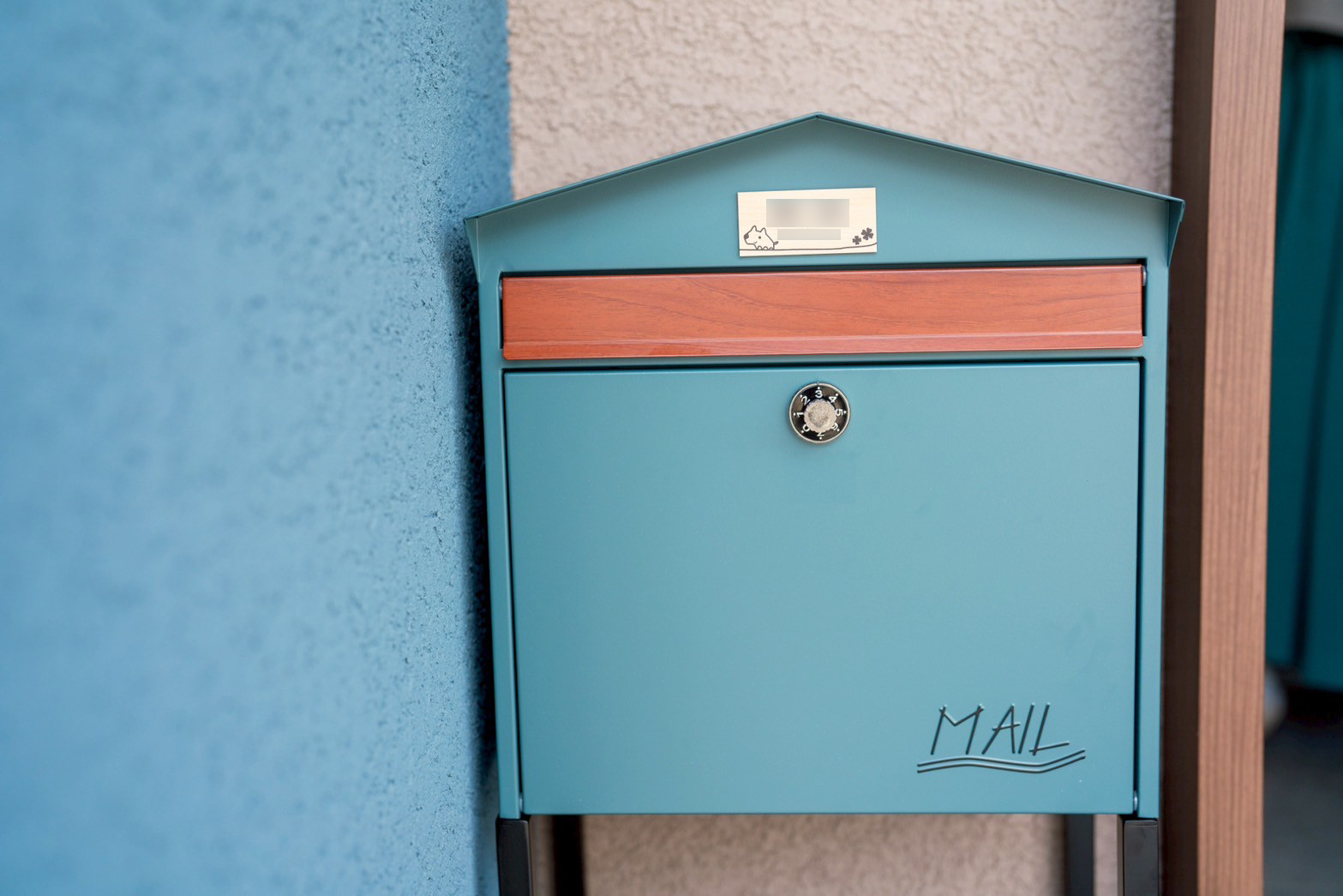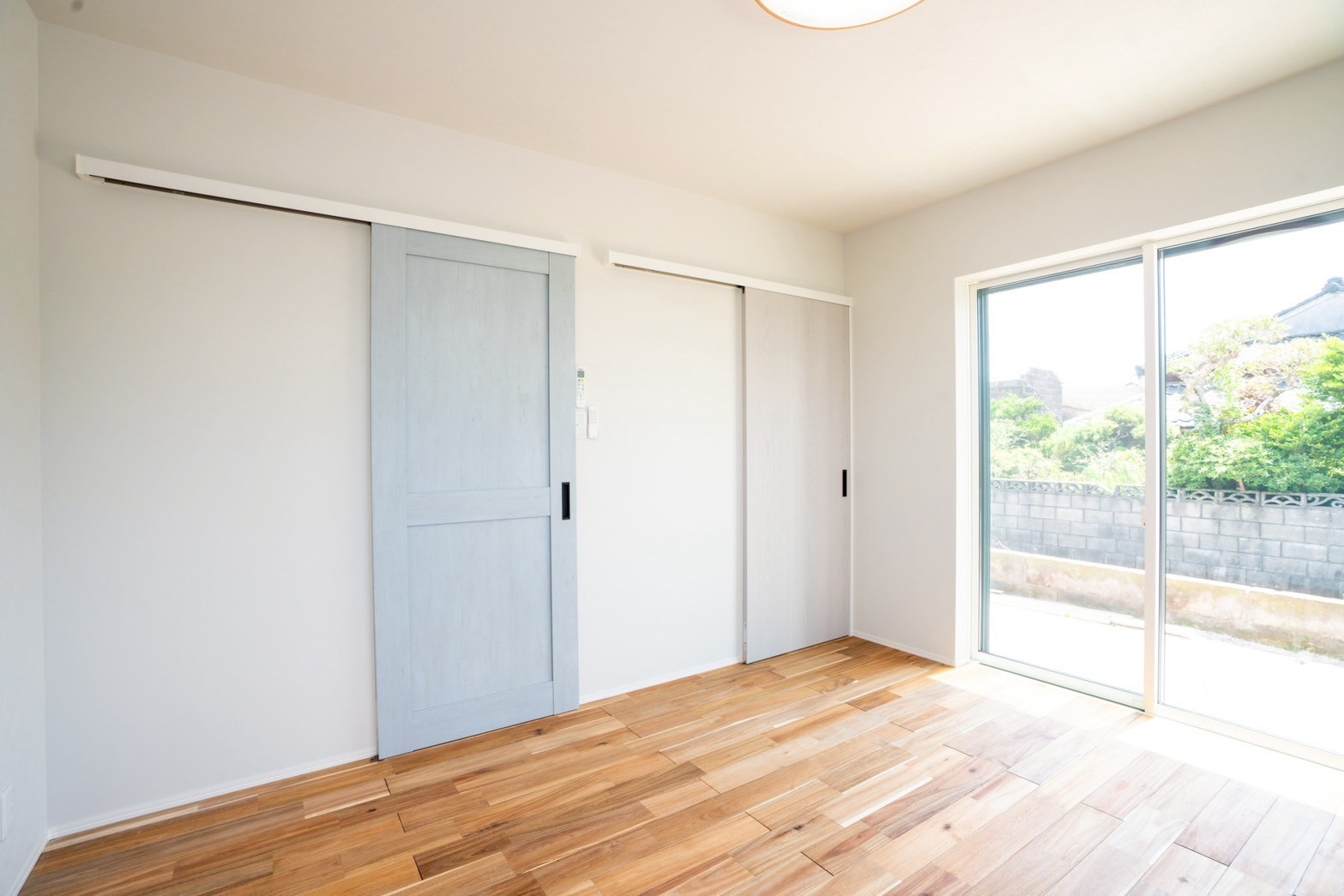 外壁はお施主様が選ばれた、水色×ベージュのやさしい塗り壁。