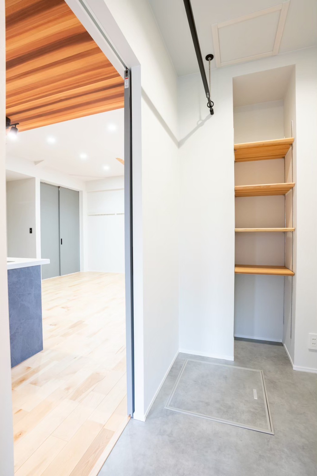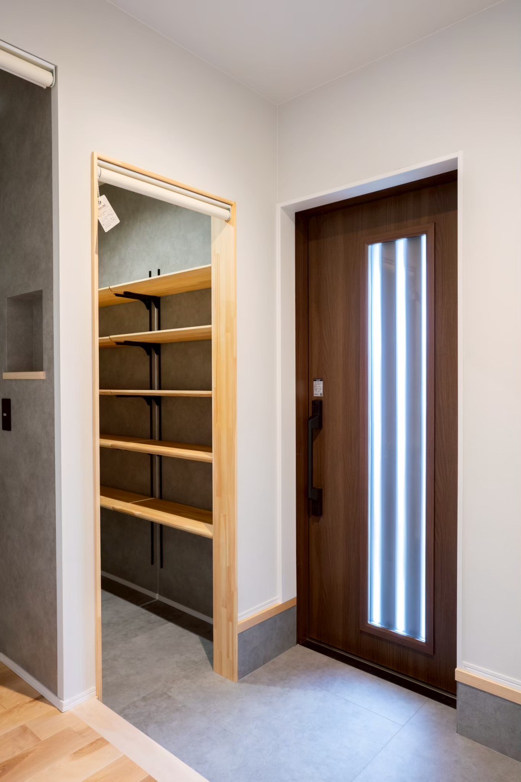靴・コート・バッグなどをここで完結できるため、メイン玄関はいつでもスッキリ。