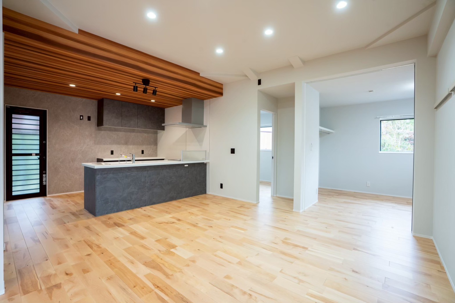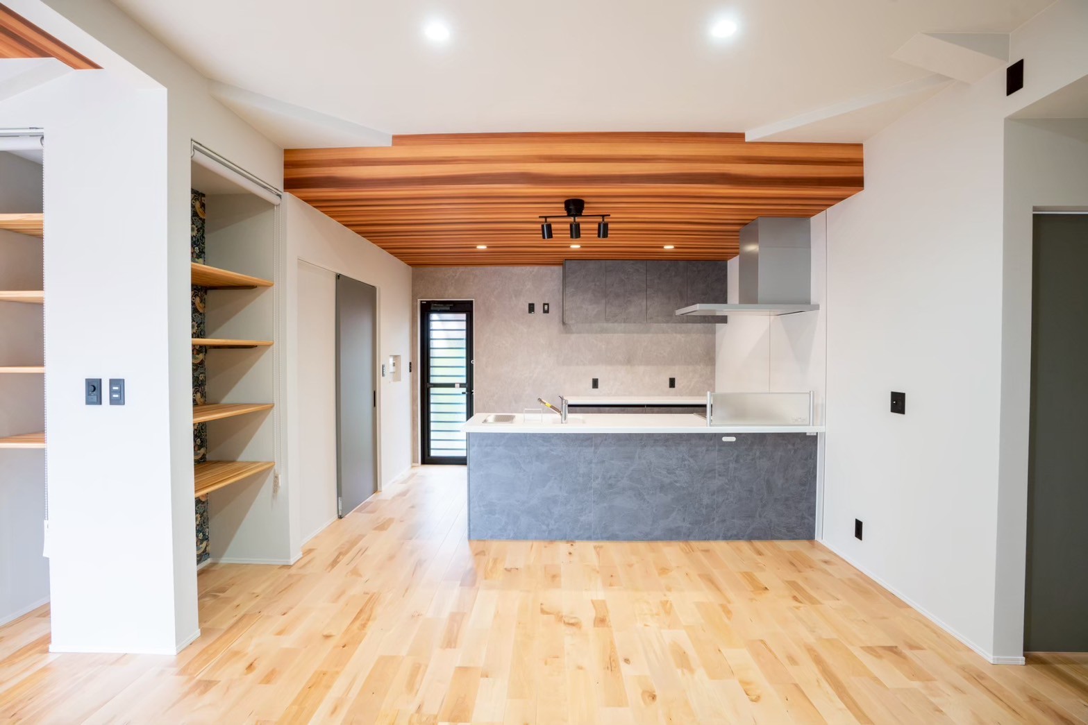 土間には高級床材の Parador(コンクリートグレイ)を採用し、耐久性・デザイン性の両方が叶う仕上がりに。