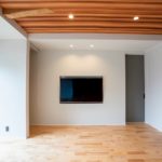 壁をふかしてニッチを造作し、テレビをすっきり壁掛け収納。