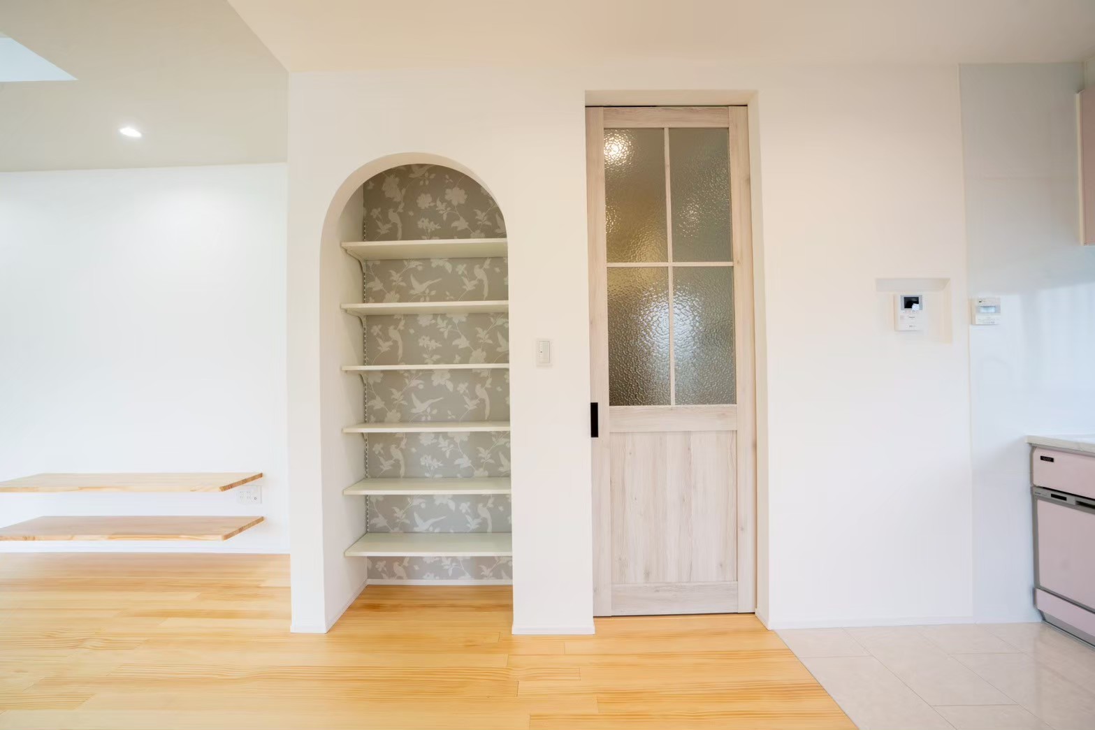 お気に入りの小物や写真を飾れるニッチを設け、