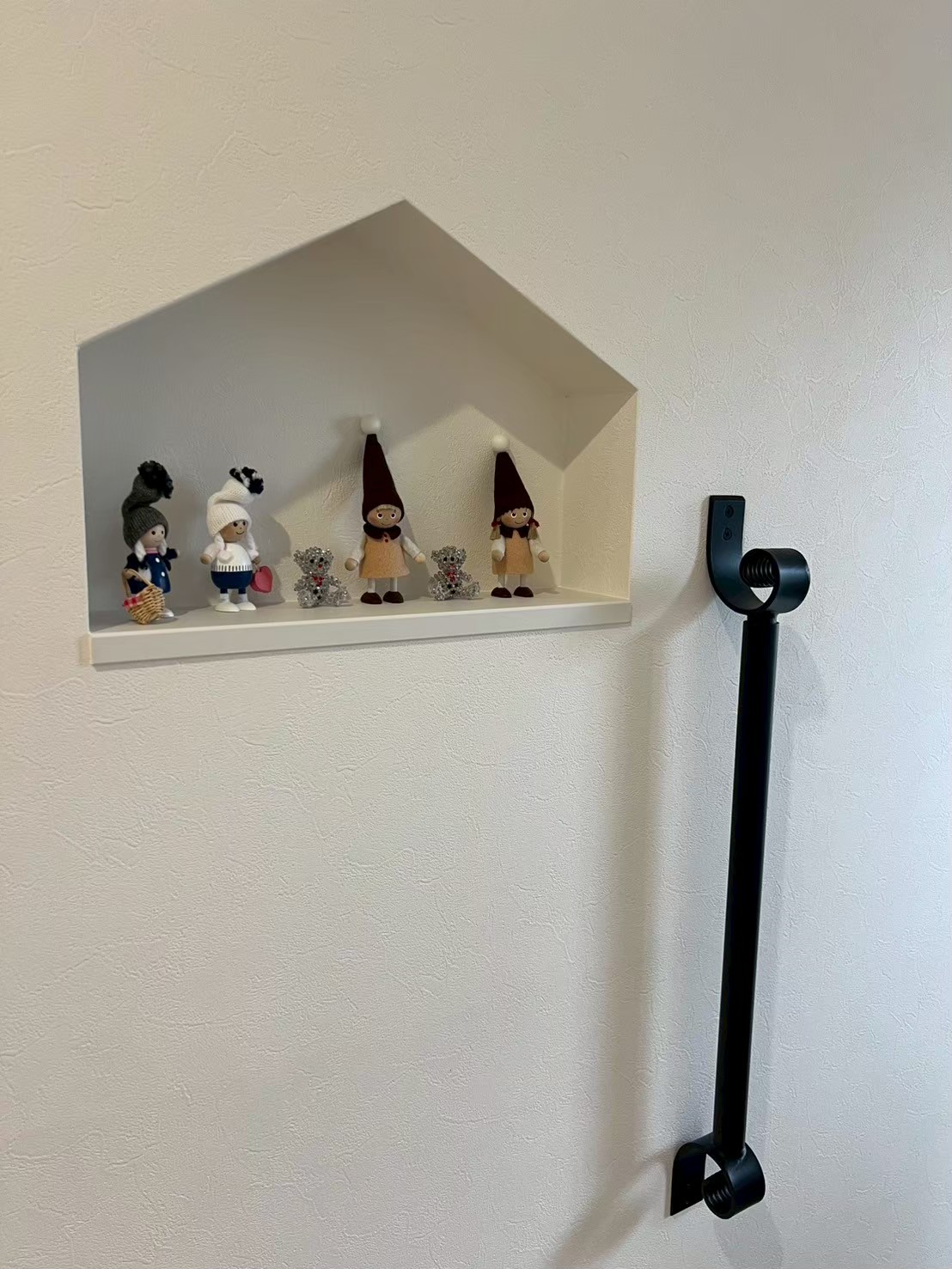 家の形に仕上げたニッチは見た目もかわいく、毎日通るたびに気分が上がるアクセントに。