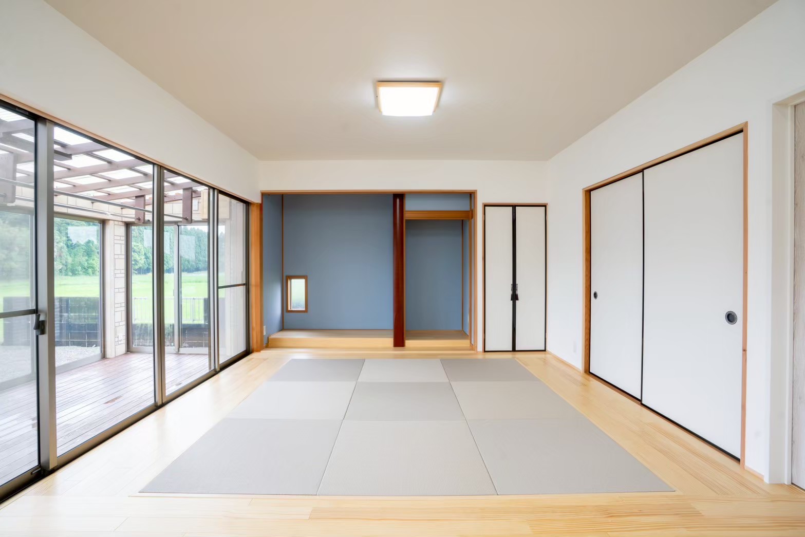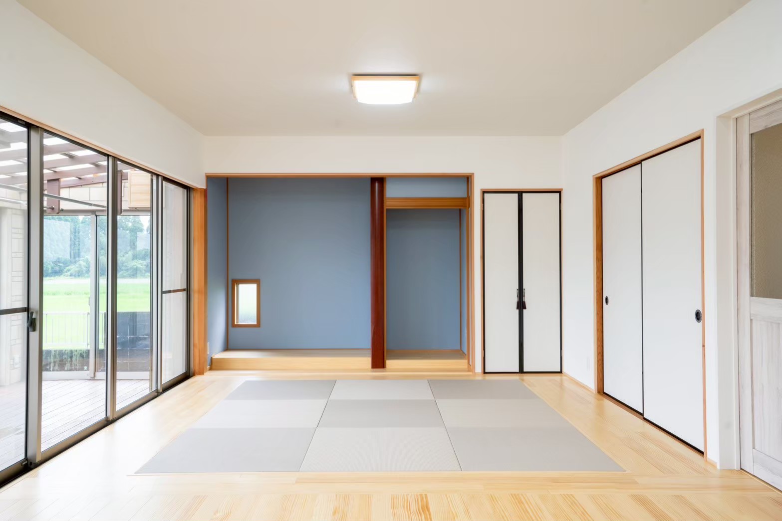 和室の一部には琉球畳コーナーを設け、“和”の落ち着きを残しつつ、お子様が遊んだり、お昼寝ができる柔らかいスペースとしても活躍します。