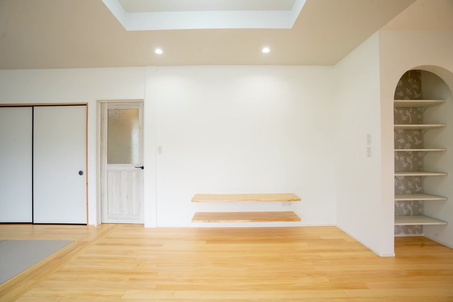 お気に入りの小物や写真を飾れるニッチを設け、