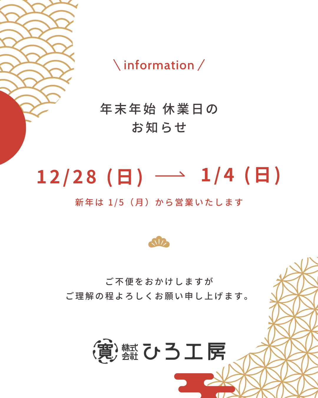 休業期間:2025年12月28日(日)~ 2026年1月4日(日)